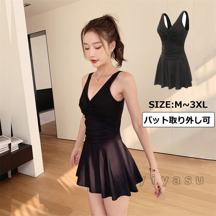 水着 レディース ワンピース スイムウェア 体型カバー 大きいサイズあり オールインワン フレア 見せパン付き パット付き 夏 ママ かわいい 海 温泉 旅行