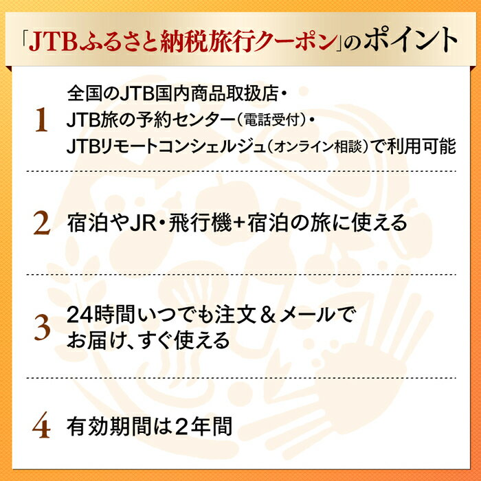 ◆ご利用の注意点◆ 1.「JTBふるさと納税旅行クーポン」のご利用はJTB店舗、JTB総合提携店またはJTB旅の予約センター(電話受付専用)でご利用いただけます。