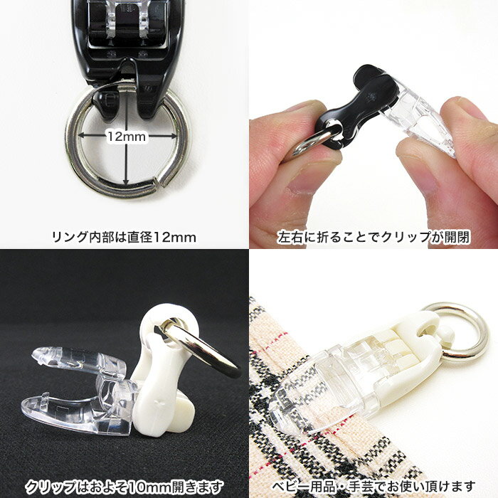 フィッシュクリップ リング付き ダブル5個入り|ブラック ホワイト ベビー用 クリップ スタイ おしゃぶり ホルダー 手作り 手芸 日本製 マスク 一時保存