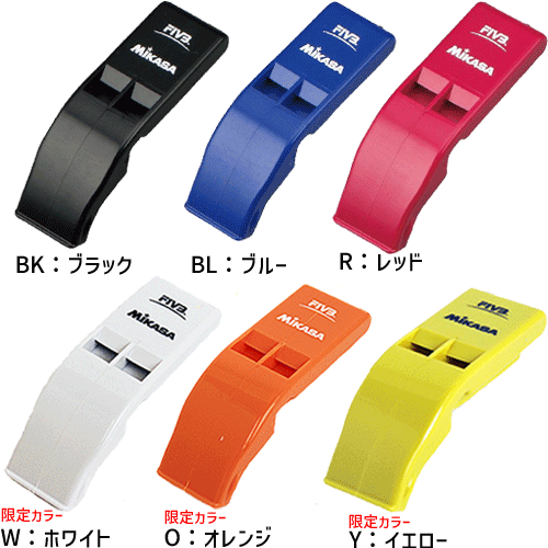 MIKASA(ミカサ) バレーボール ホイッスル■カラー(BK)ブラック(BL)ブルー(R)レッド(W)ホワイト[限定カラー](O)オレンジ[限定カラー](Y)イエロー[限定カラー] ■特徴・低い音のまったく新しいタイプの長管ホイッスル・新構造で楽にふける・軽量なので長時間のジャッジでも疲れにくく、美しい曲線形状が口にフィット・安全性に配慮したミカサオリジナルストラップ付■素材・仕様・ABS樹脂、ひも付(ナイロン製、安全パーツ付)■生産国・日本製 3個までメール便がご利用頂けます!(送料220円)<ご希望の方はこちらをご確認ください。