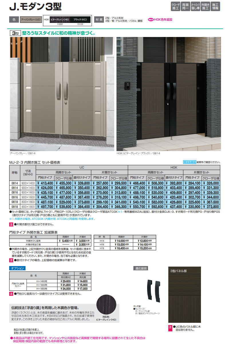 形材門扉三協アルミ 三協立山J.モダン3型内開き施工 木目調色 両開きセット 門柱タイプ0818 W800×H1800(扉1枚寸法)ガーデン DIY 塀 壁 囲い 境界 屋外