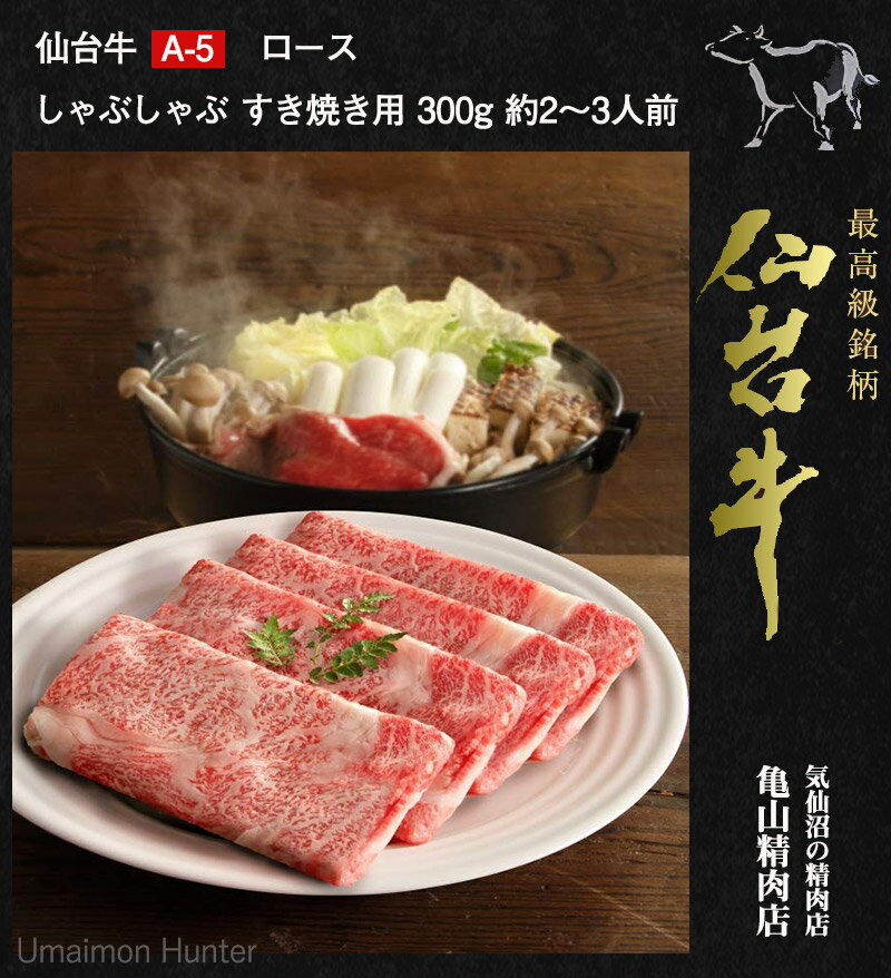 ギフト 木箱入り 亀山精肉店 仙台牛 A-5 ロース しゃぶしゃぶ すき焼き用 300g 約2〜3人前 人気 お肉 一部地域追加送料あり
