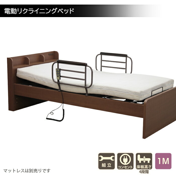 電動リクライニングベッド シングル 電動ベッド 1モーター 介護ベッド 電動 介護用ベッド ベッド 高さ調節 電動 リクライニングベッド リラックスベッド ブラウン コンセント 宮付き 電動リクライニングベット 高級感 シンプル モダン