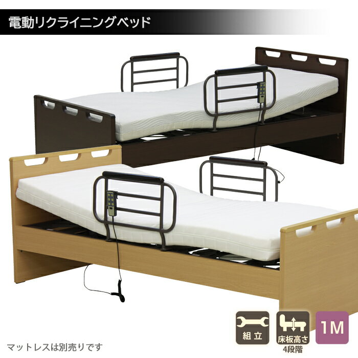 電動ベッド 1モーター 電動リクライニングベッド シングル 介護ベッド 電動 介護用ベッド ベッド 高さ調節 電動 リクライニングベッド リラックスベッド ナチュラル ブラウン 電動リクライニングベット 高級感 シンプル モダン
