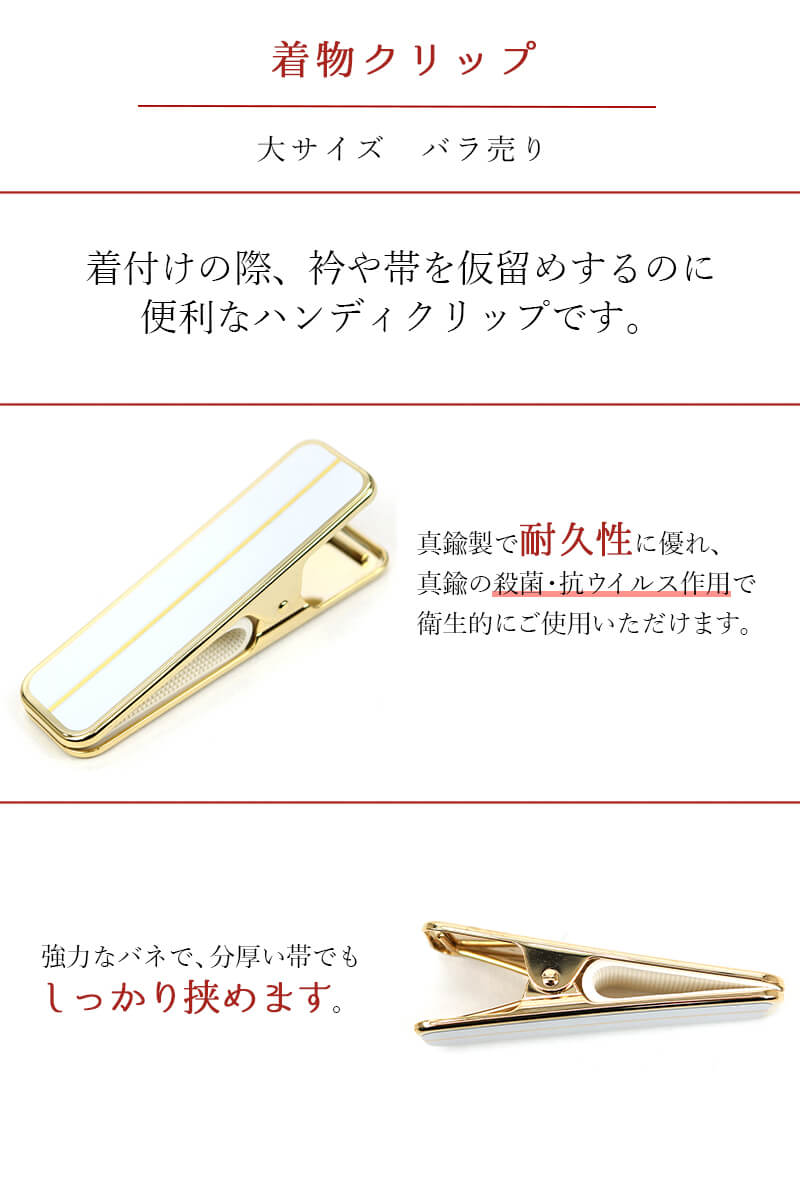 着付けクリップ 真鍮 単品 バラ売り 大 赤 白 着物クリップ ハンディクリップ 衿留め 仮留め 和装小物 着付け小物 【新品】【あす楽対応】【メール便OK】
