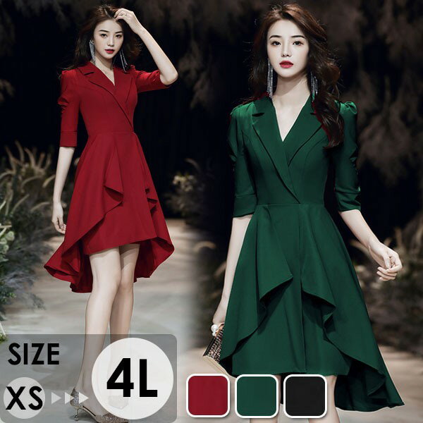 ドレス 大人 ピアノ 発表会 パーティードレス フィッシュテール Vネック 袖付き 五分袖 フォーマルワンピース 体型カバー 母親 結婚式 成人式 同窓会 演奏会 二次会 忘年会 上品 お呼ばれ 20代 30代 40代 ワインレッド ブラック グリーン XS S M L 2L 3L 4L dd176t2t2t2